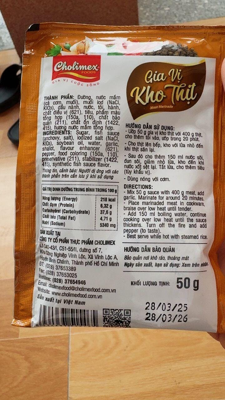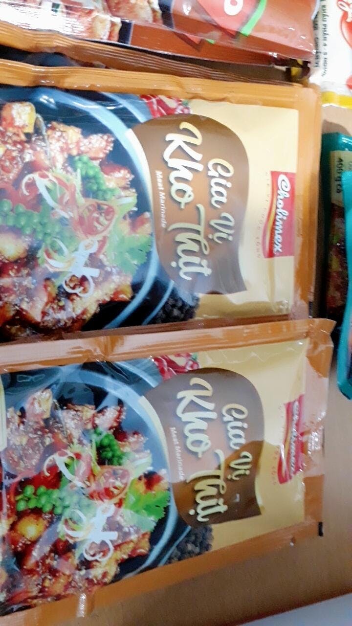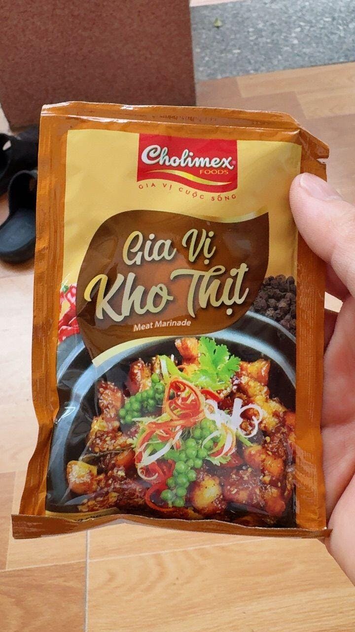 • Gia vị kho thịt Cholimex rất tiện dụng cho các món thịt kho vì tổng hợp đủ các gia vị như nước mắm, tỏi,hành, đường, muối, bột ngọt, nước màu, tiêu.